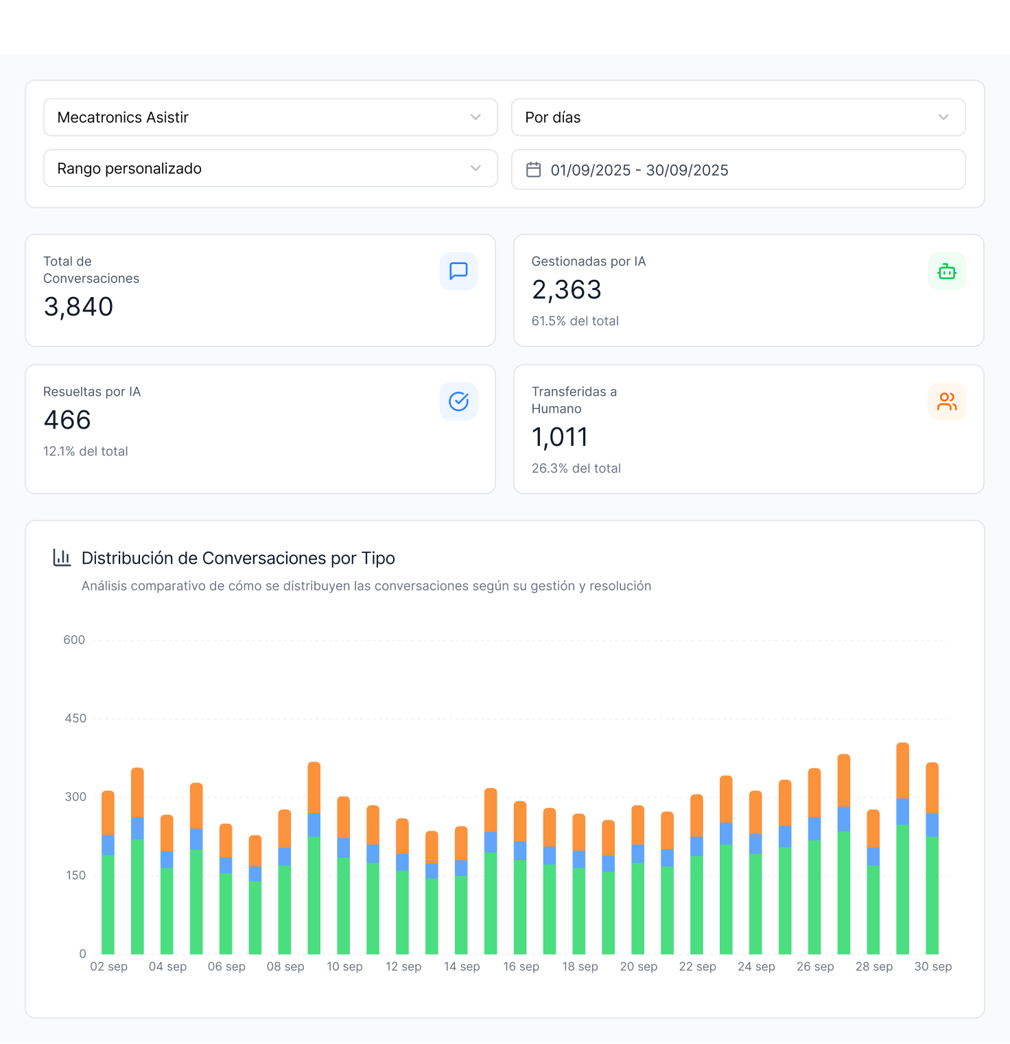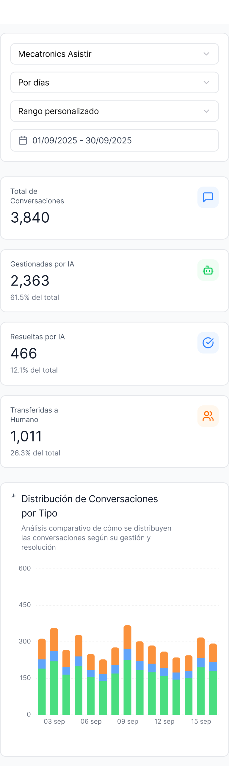 Mecatronics enfrentaba una carga de soporte mucho mayor a la esperada, con procesos manuales y limitaciones de personal que dificultaban responder a los clientes en momentos críticos y fuera del horario laboral.